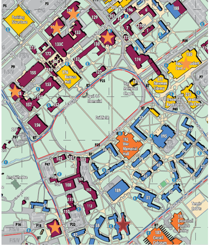 | Maroon star is East Ambler-Johnston, freshman home Orange stars are freshman class buildings |